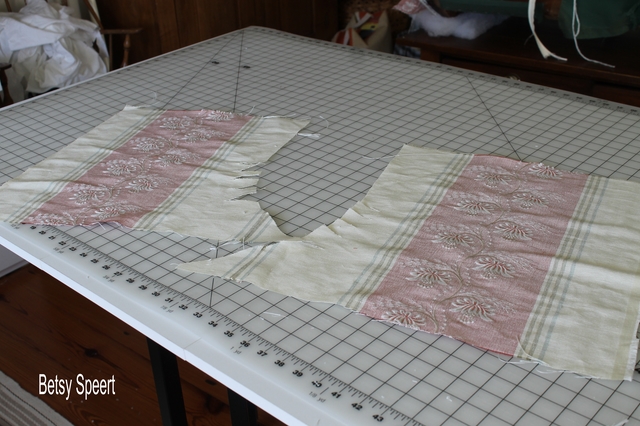 I laid the pattern on the linen fabric, and cut out the back and arms.